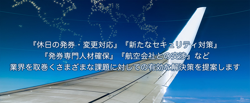 海外旅行や業務渡航市場を取巻く環境は目まぐるしい変化を続けています。生き残りのためには、その変化に遅れることなく順応する必要があります。 当社はこれらの変化を見通しながら、国際航空券発券関連業務に関しての最適な提案を行います。